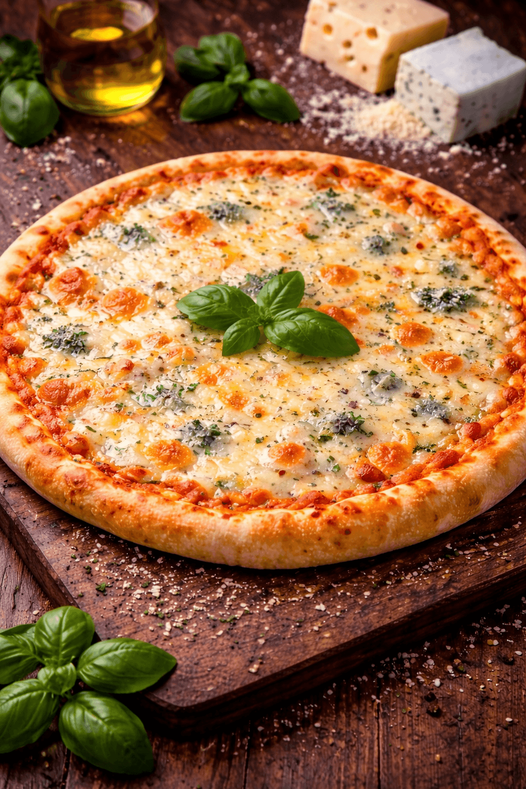 🍕 4 vrste siraKremasta kombinacija četiri različita sira koja se savršeno tope na hrskavom testu i daju pun, bogat ukus.