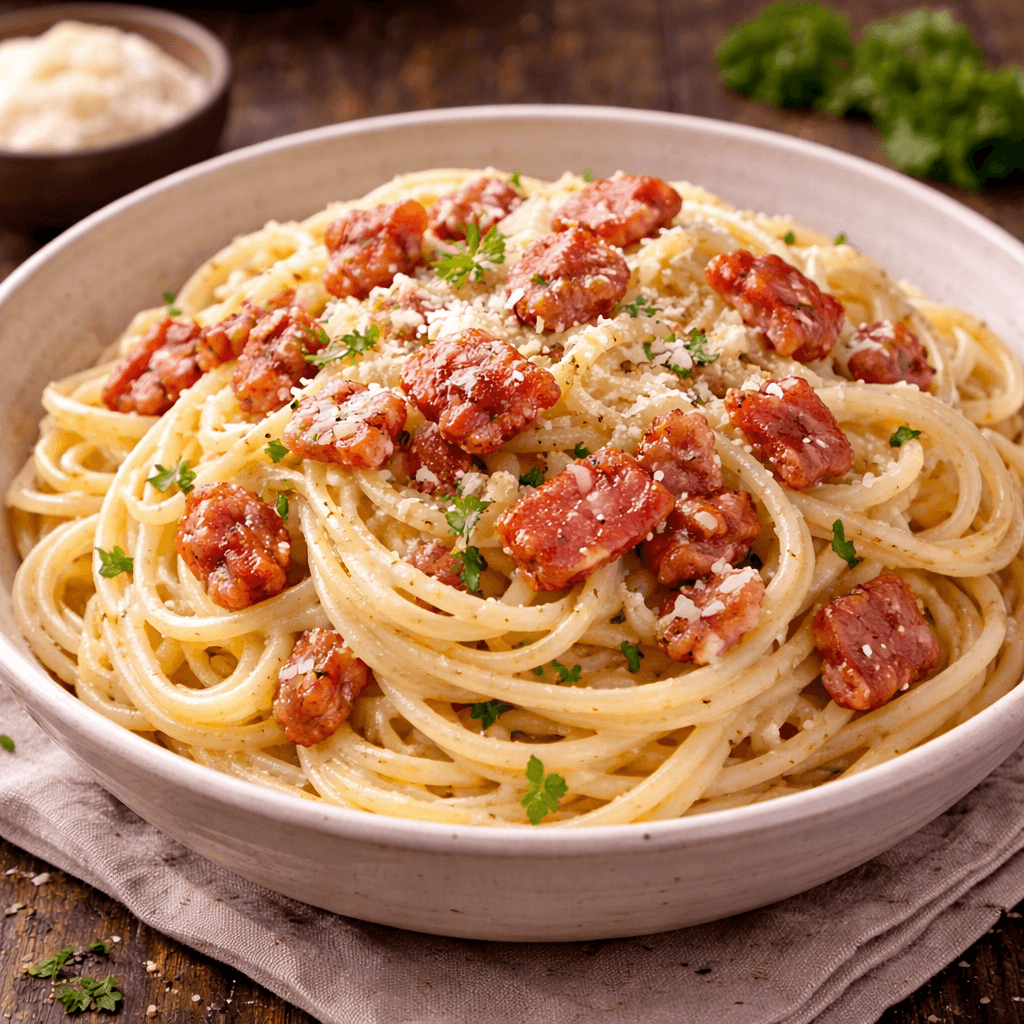 🍝 Pasta KarbonaraKremasta pasta u bogatom sosu sa hrskavim komadićima slanine i topljenim sirom – savršena kombinacija koja daje pun i nezaboravan ukus svakom zalogaju.