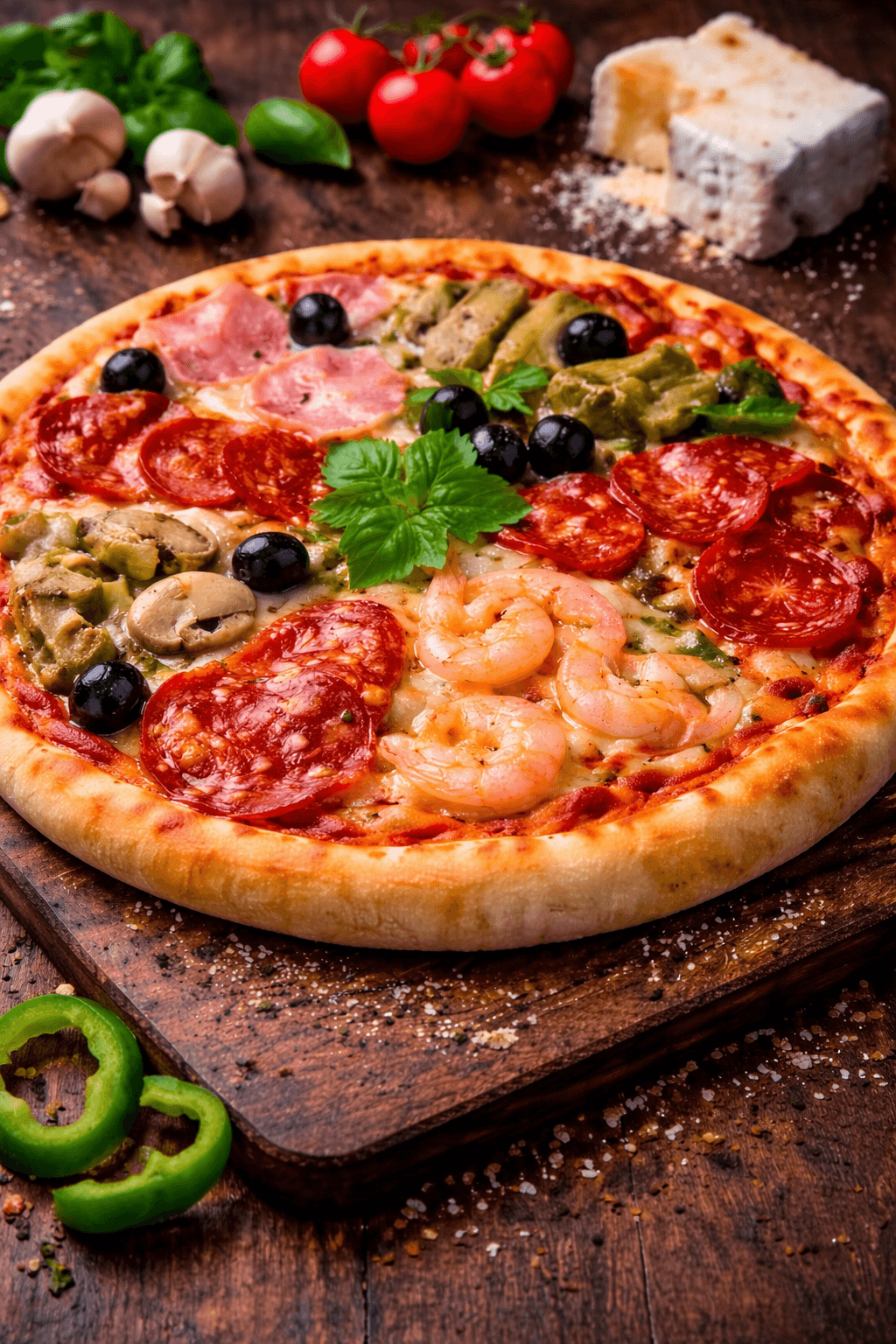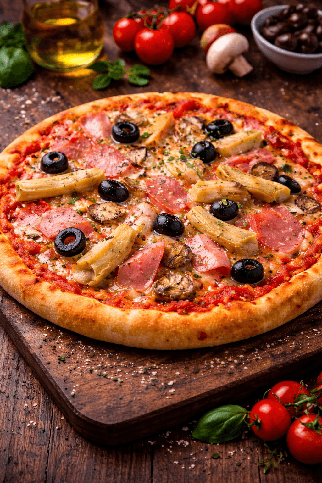 🍕 KaprićozaBogata kombinacija šunke, pečuraka, maslina i kačkavalja na našem svežem testu i domaćem paradajz sosu.