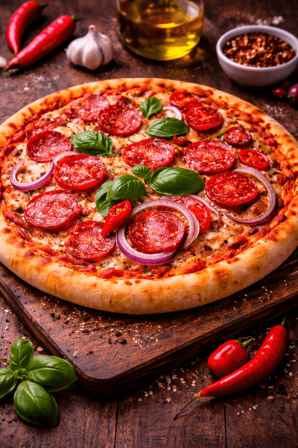 🍕 DijavoloBogata kombinacija mesa, paradajz sosa i topljenog sira uz blagu ljutinu koja daje savršeni karakter svakoj kriški.