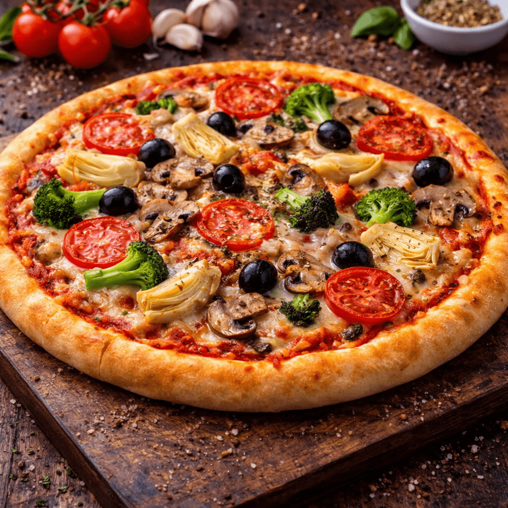 🍕 PosnaHrskavo testo, domaći paradajz sos i bogata kombinacija svežeg povrća koja daje savršeno lagan i ukusan zalogaj.
